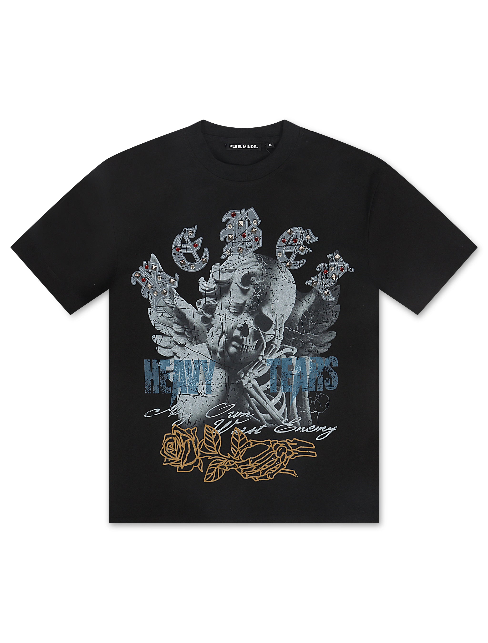 Rebel Minds Heavy Tears Rhinestone Tee - Black